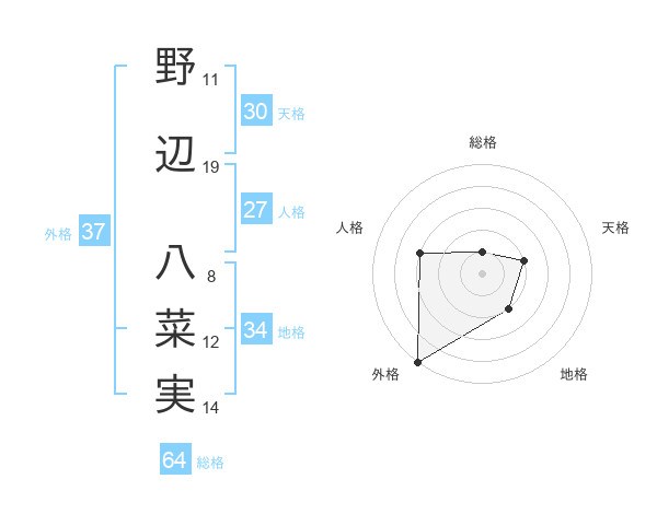 野辺 八菜実さんを姓名の画数から五運を鑑定