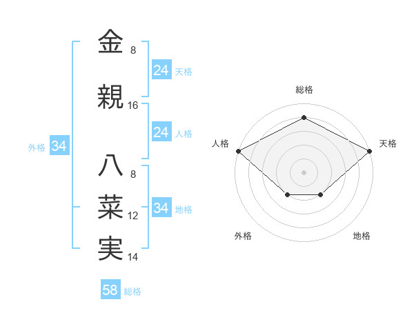 金親 八菜実さんを姓名の画数から五運を鑑定