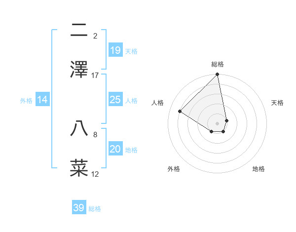 二澤 八菜さんの総格は39画の5点!