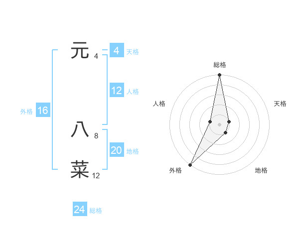 元 八菜さんの外格は16画の5点!