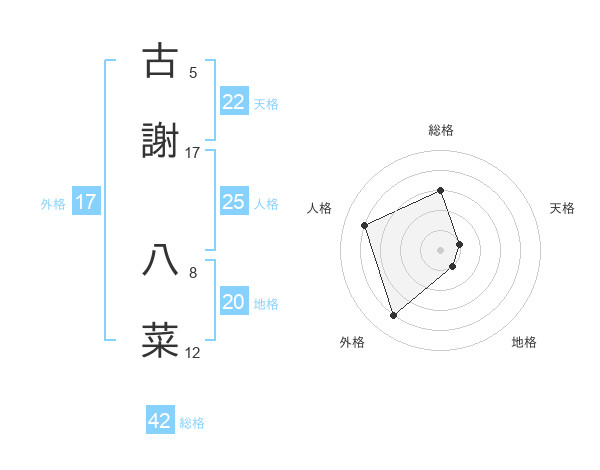 古謝 八菜さんの外格は17画の4点!