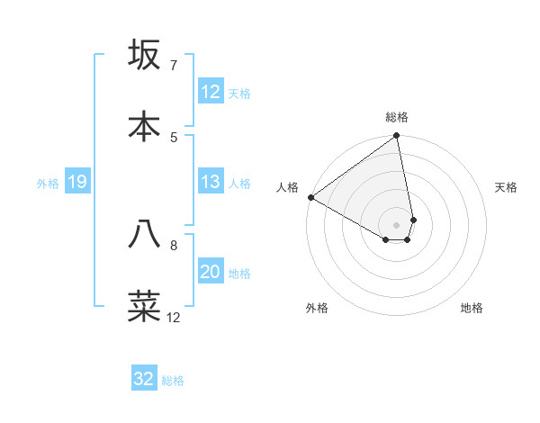 坂本 八菜さんの外格は19画の1点!