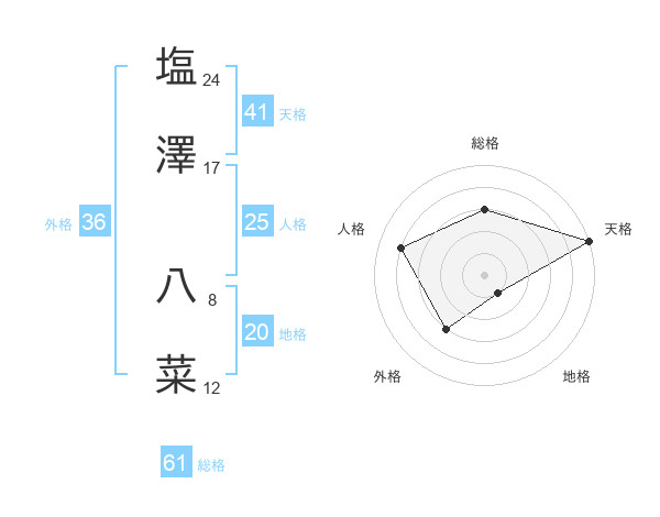 塩澤 八菜さんを姓名の画数から五運を鑑定