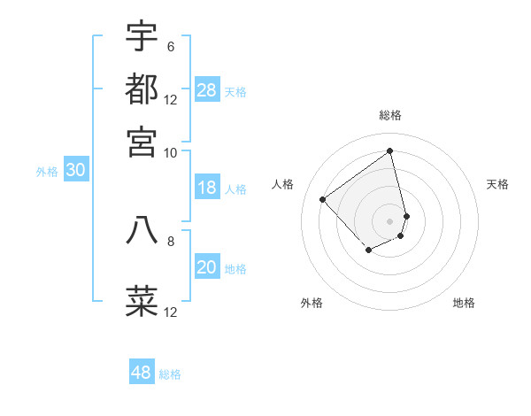 宇都宮 八菜さんを姓名の画数から五運を鑑定