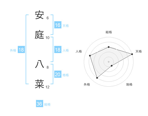 安庭 八菜さんの天格は16画の5点!