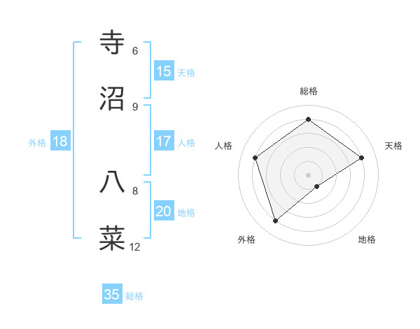 寺沼 八菜さんを姓名の画数から五運を鑑定