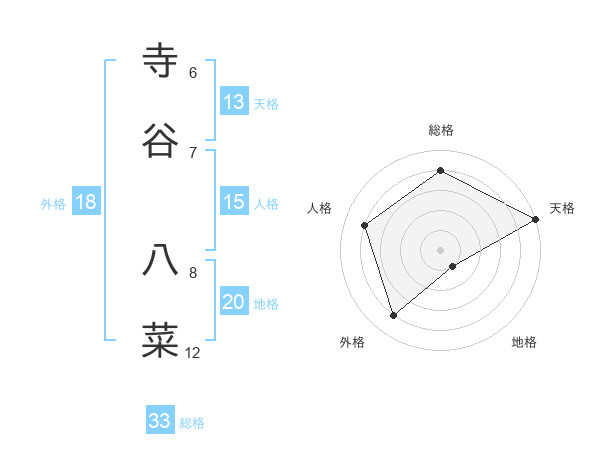 寺谷 八菜さんを姓名の画数から五運を鑑定