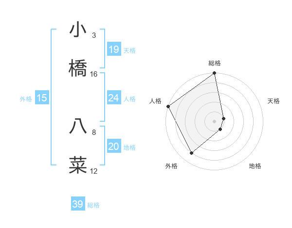 小橋 八菜さんを姓名の画数から五運を鑑定