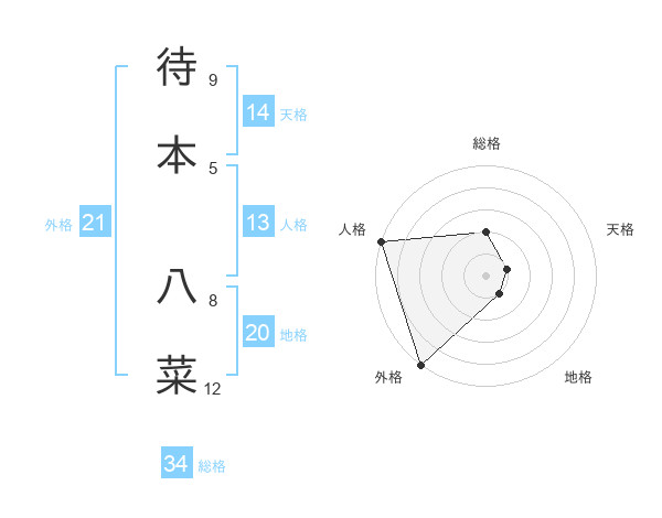 待本 八菜さんの外格は21画の5点!