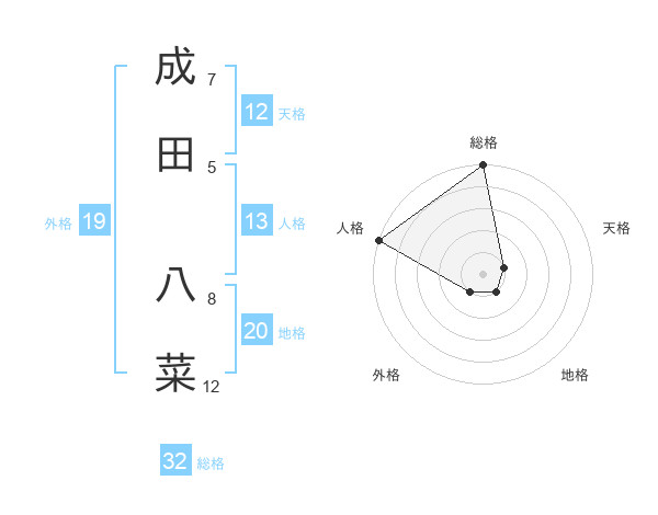 成田 八菜さんの総格は32画の5点!