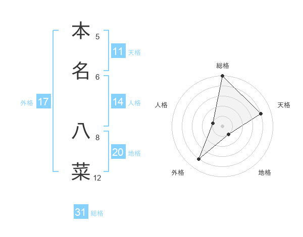 本名 八菜さんの総格は31画の5点!