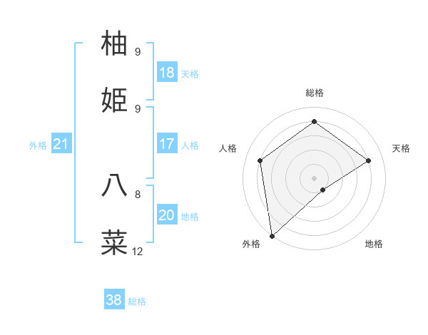 柚姫 八菜さんの外格は21画の5点!