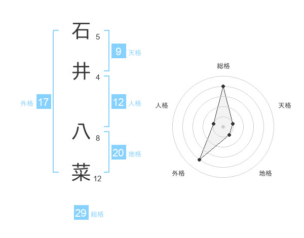 石井 八菜さんの総格は29画の4点!