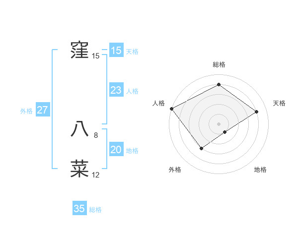 家系が持つ宿命的な運勢を表します。祖先から受け継いだ苗字ですので自分の力が及びません。家柄を象徴します。
