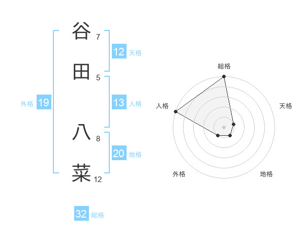 谷田 八菜さんを姓名の画数から五運を鑑定