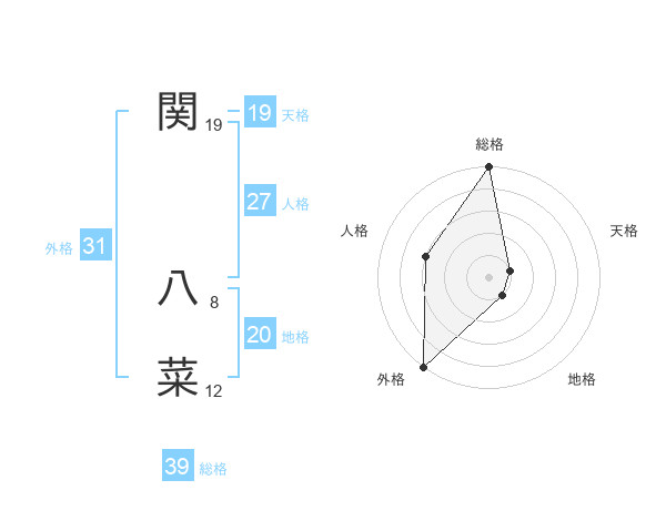 関 八菜さんの外格は31画の5点!