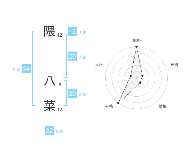 隈 八菜さんの外格は24画の5点!