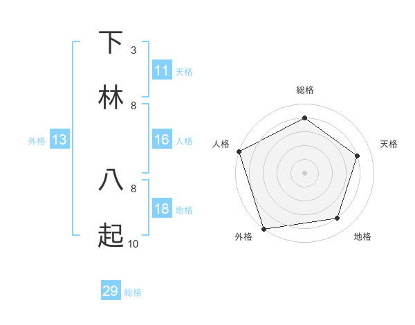 下林 八起さんの総格は29画の4点!