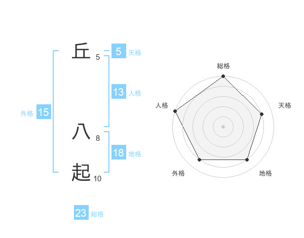 丘 八起さんの人格は13画の5点!