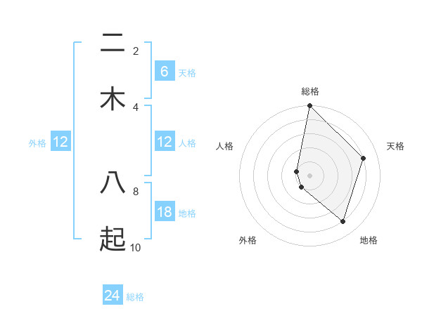 二木 八起さんの天格は6画の4点!