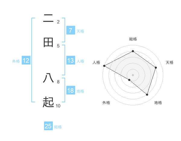 二田 八起さんの総格は25画の4点!