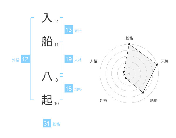 入船 八起さんの総格は31画の5点!