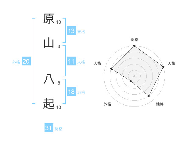 原山 八起さんの天格は13画の5点!