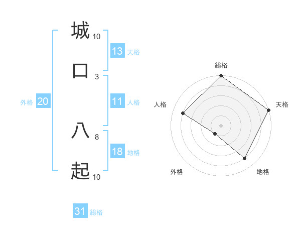 城口 八起さんの総格は31画の5点!