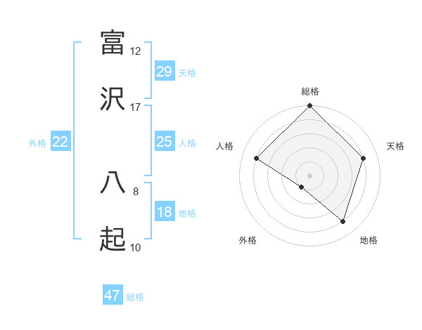 富沢 八起さんの総格は47画の5点!