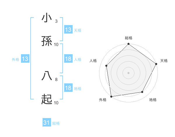 小孫 八起さんの総格は31画の5点!