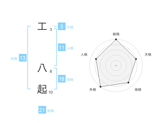 工 八起さんの総格は21画の5点!