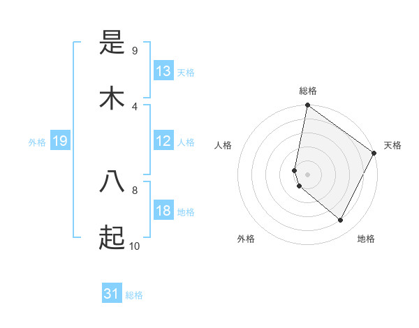 是木 八起さんの天格は13画の5点!