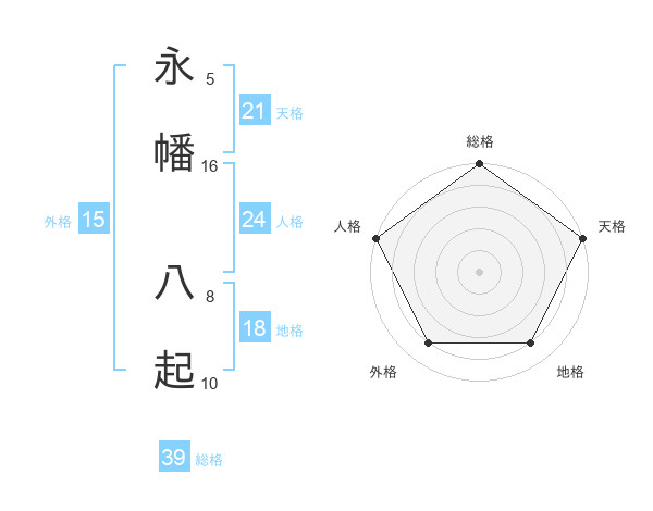 永幡 八起さんの天格は21画の5点!