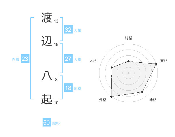 渡辺 八起さんの総格は50画の2点!