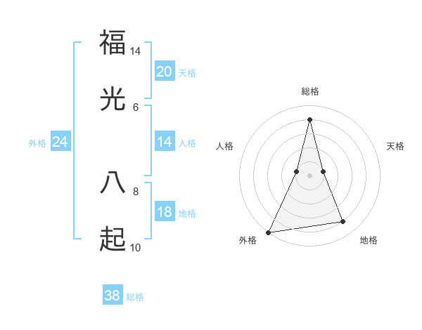 福光 八起さんの総格は38画の4点!