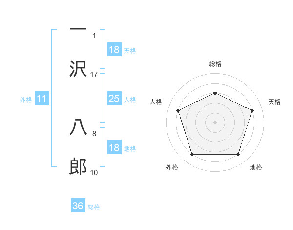 一沢 八郎さんを姓名の画数から五運を鑑定