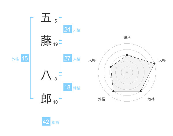 五藤 八郎さんを姓名の画数から五運を鑑定