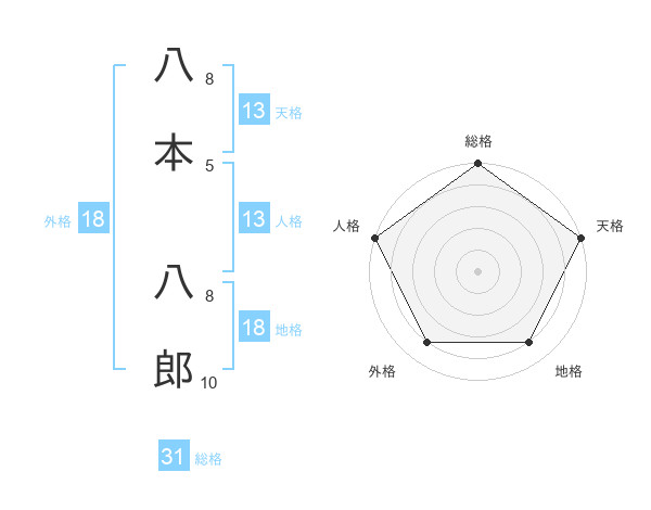 八本 八郎さんの総格は31画の5点!