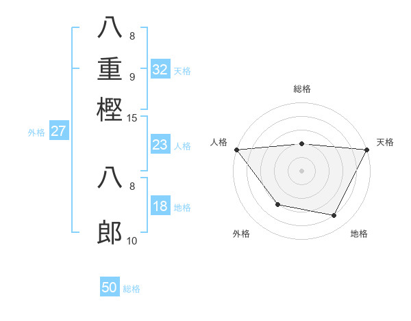 八重樫 八郎さんの総格は50画の2点!