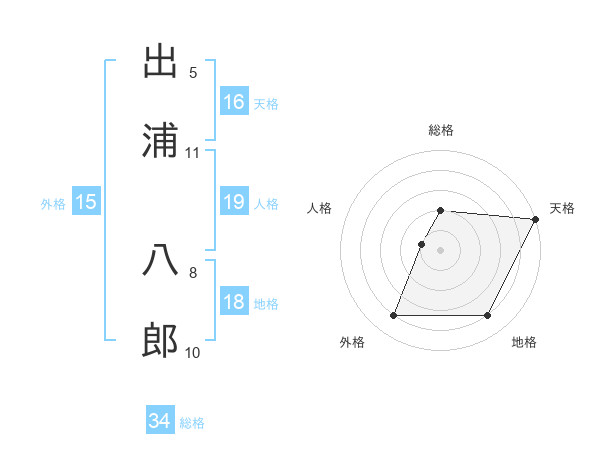 出浦 八郎さんを姓名の画数から五運を鑑定