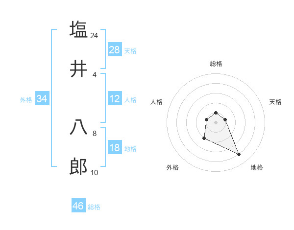 塩井 八郎さんを姓名の画数から五運を鑑定