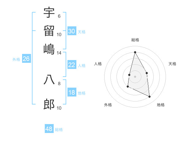 宇留嶋 八郎さんを姓名の画数から五運を鑑定