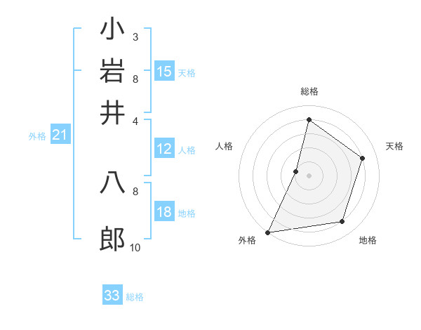 小岩井 八郎さんを姓名の画数から五運を鑑定