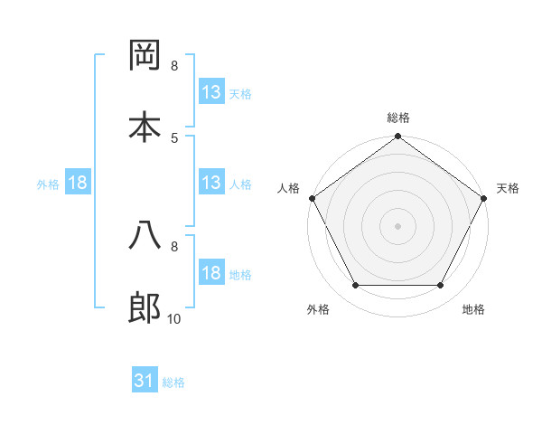 岡本 八郎さんを姓名の画数から五運を鑑定