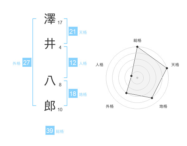 澤井 八郎さんの総格は39画の5点!
