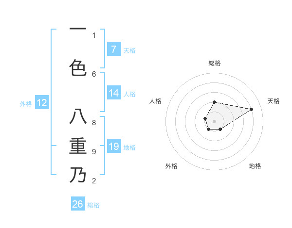 一色 八重乃さんを姓名の画数から五運を鑑定