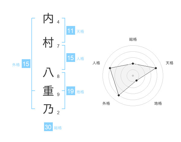 内村 八重乃さんを姓名の画数から五運を鑑定