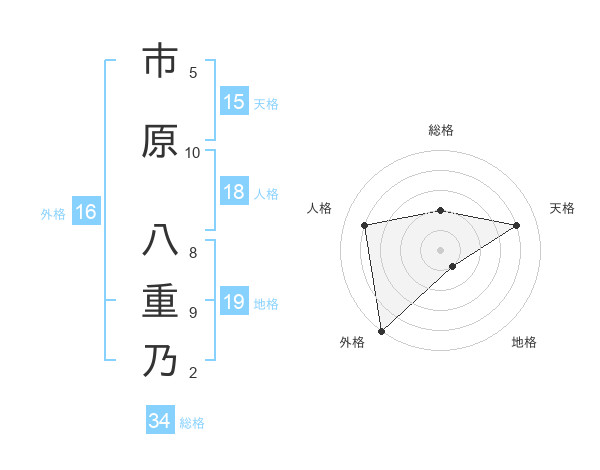 市原 八重乃さんを姓名の画数から五運を鑑定