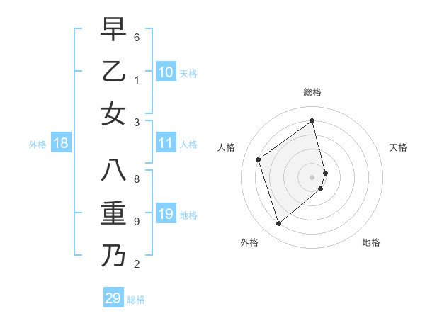 早乙女 八重乃さんを姓名の画数から五運を鑑定