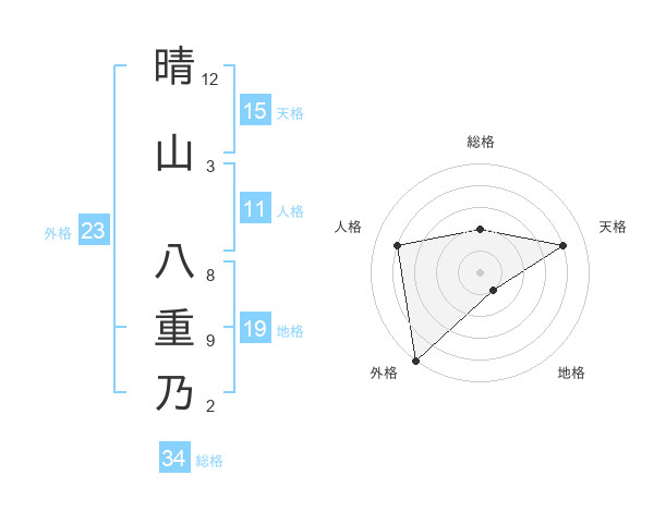 晴山 八重乃さんを姓名の画数から五運を鑑定